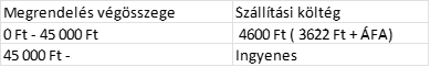 A bruttó 45 000 Ft alatti rendeléseknél a kosár oldalon ki lehet választani az adott szállítási módot és a hozzá tartozó árat: